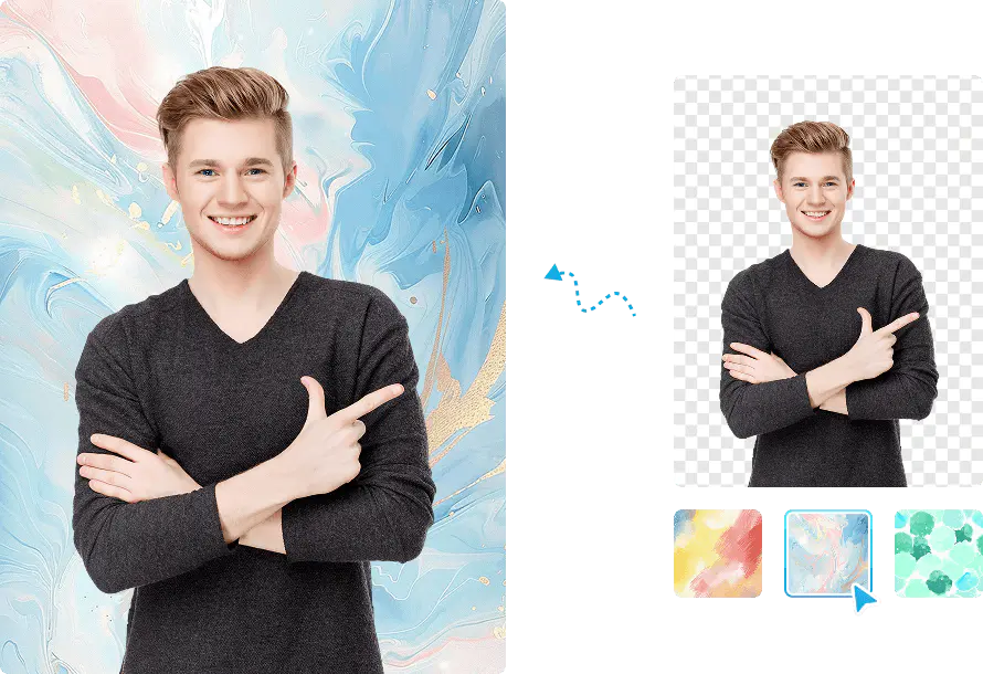 Laden Sie einfach ein Bild in einen PNG-Maker wie AVCLabs Online PNG Maker hoch. Entfernen Sie dann den Hintergrund und erhalten Sie ein PNG-Bild mit transparentem Hintergrund.